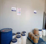 四樓原料儲(chǔ)存區(qū):已增加了產(chǎn)品名稱標(biāo)示牌與安全周知卡 三樓罐裝車間:已劃分了擺放區(qū)域